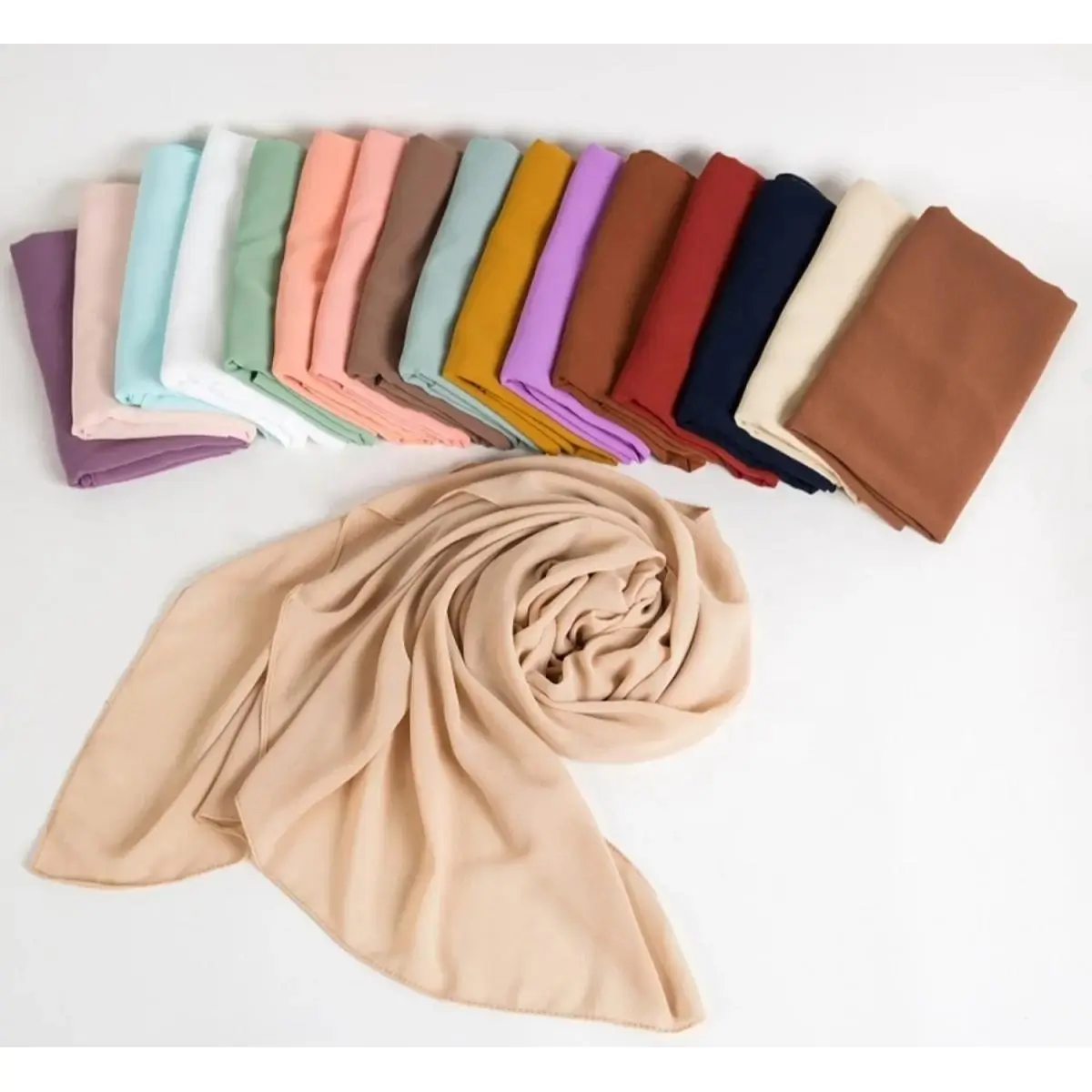 শিফন জর্জেট: এটি অত্যন্ত উন্নত মানের এবং পাতলা ফেব্রিক। সাধারণ সুতি হিজাবের তুলনায় এটি অনেক বেশি মসৃণ এবং এতে একটি হালকা রেশমি ভাব থাকে।